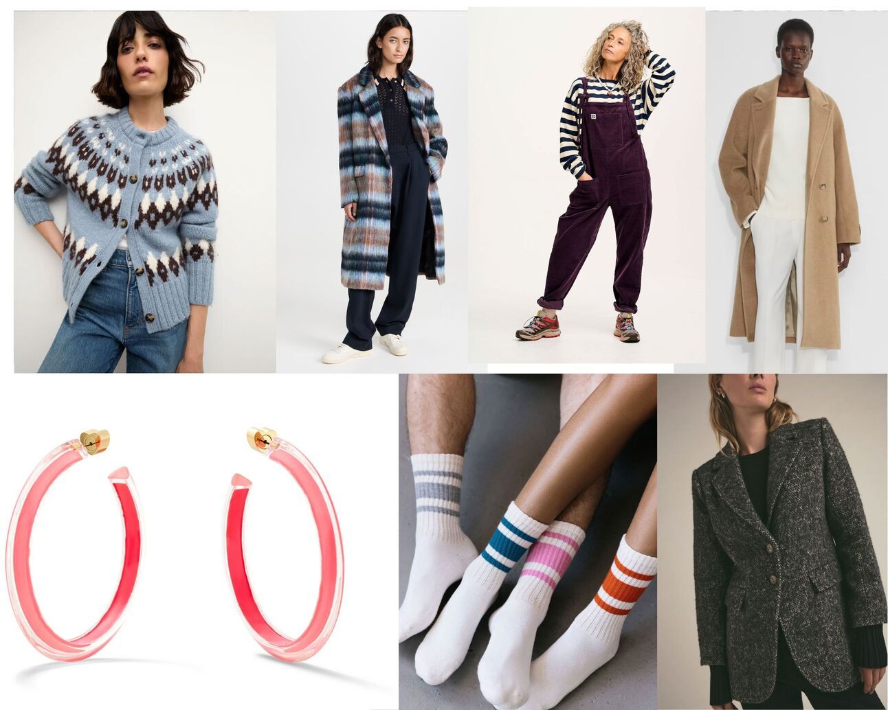 This Aritzia coat which looks expensive with a capital E, I do not need another interesting wool coat, but I want this one nonetheless, I am forever wanting to buy overalls, these socks which I think I need to buy? This dressssss.